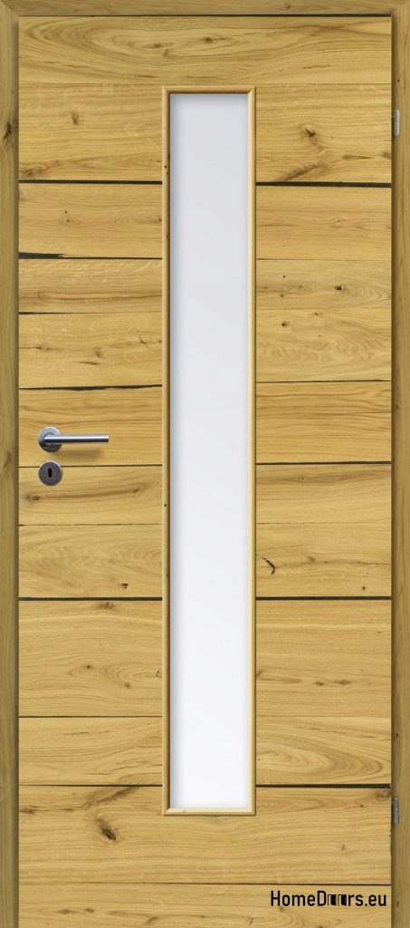 Drzwi o konstrukcji płytowej, oklejone naturalnym fornirem. Krawędzie drzwi zdobi naturalne drewno. Wypełnienie drzwi stanowi płyta wiórowa wielootworowa, wysoko prasowana. Drzwi są uszlachetnione podwójną warstwą oleju o podwyższonym parametrze odporności na ścieranie, przyjaznym dla zdrowia i środowiska.