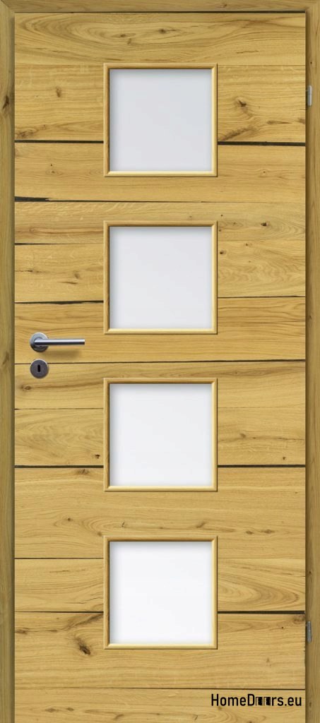Drzwi o konstrukcji płytowej, oklejone naturalnym fornirem. Krawędzie drzwi zdobi naturalne drewno. Wypełnienie drzwi stanowi płyta wiórowa wielootworowa, wysoko prasowana. Drzwi są uszlachetnione podwójną warstwą oleju o podwyższonym parametrze odporności na ścieranie, przyjaznym dla zdrowia i środowiska.