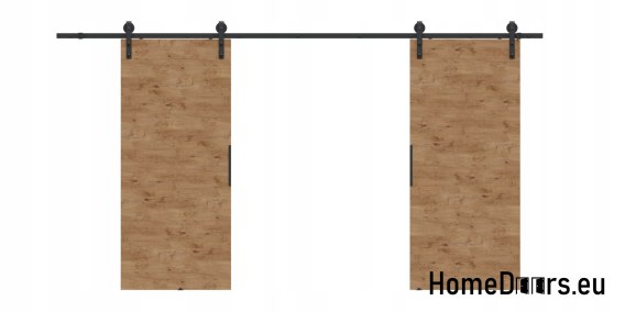 W zestawie otrzymujesz kompletne drzwi przesuwne 120 cm – skrzydło w kolorze Dębu Lancelot + czarny system przesuwny LOFT 01 + uchwyt i prowadniki.