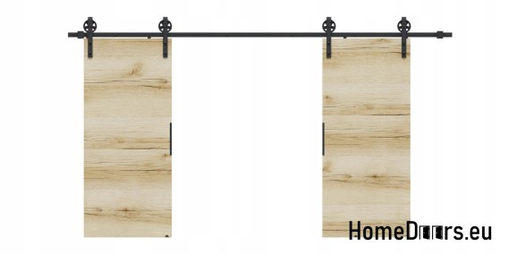 W zestawie otrzymujesz kompletne drzwi przesuwne 148 cm – skrzydło w kolorze Dębu Grand + czarny system przesuwny LOFT 04 + uchwyt i prowadniki.