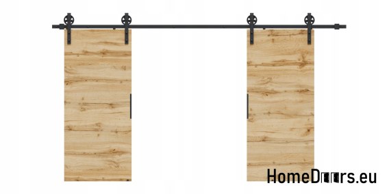 W zestawie otrzymujesz kompletne drzwi przesuwne 148 cm – skrzydło w kolorze Dębu Wotan+ czarny system przesuwny LOFT 04 + uchwyt i prowadniki.