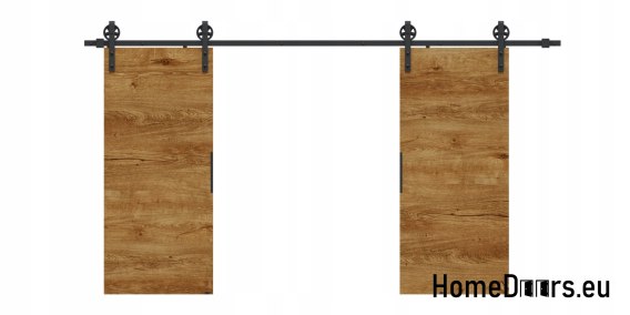 W zestawie otrzymujesz kompletne drzwi przesuwne 148 cm – skrzydło w kolorze Dębu Lefkas + czarny system przesuwny LOFT 04 + uchwyt i prowadniki.